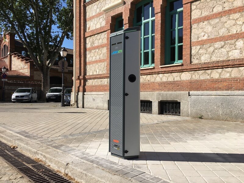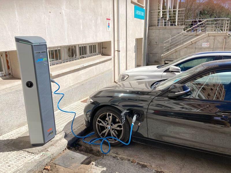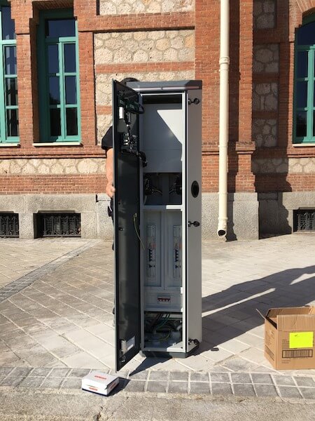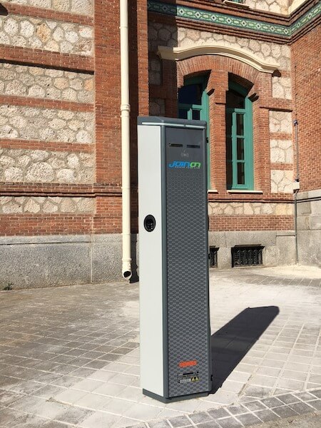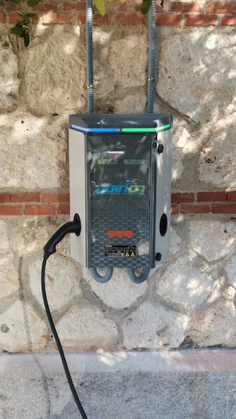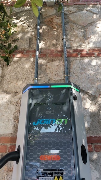 .- Suministro e instalación de punto de recarga IP5(*), las tomas son IP55(**) en reposo y en carga, permiten mantener la IP en carga, ya que cuentan con una tecnología de drenaje de agua, incluyen visualización en Led, versión de comunicaciones OCPP 1.6 (***)